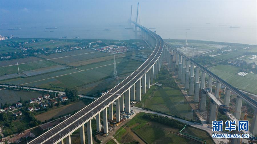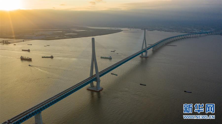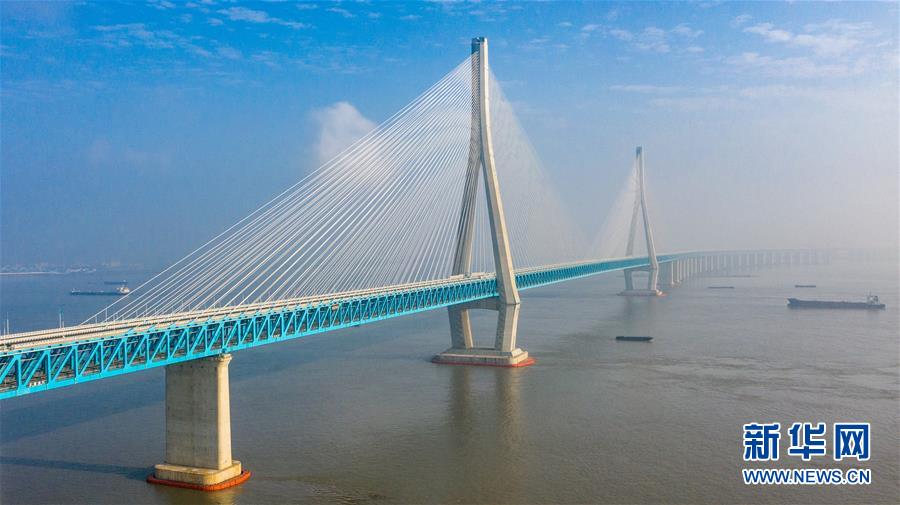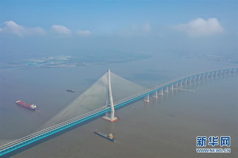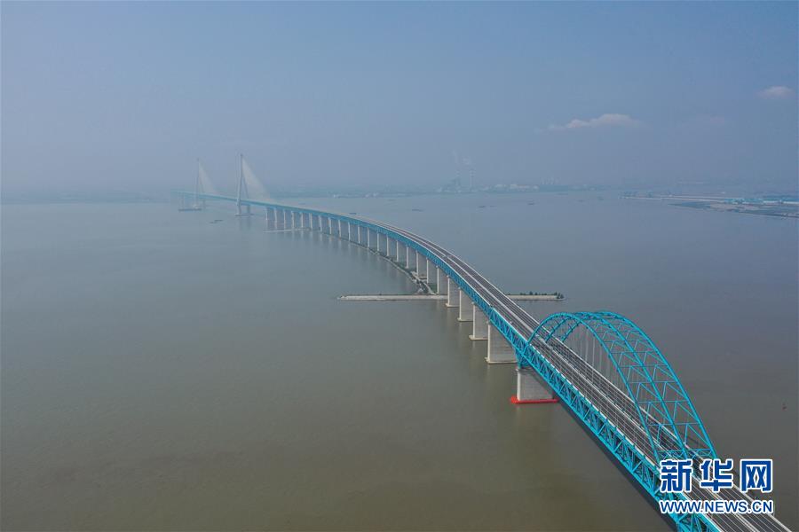 滬蘇通長(zhǎng)江公鐵大橋(6月30日攝,無(wú)人機(jī)全景拼接照片)。即將于7月1日通車的滬蘇通長(zhǎng)江公鐵大橋北起江蘇南通,南至江蘇張家港,公鐵合建跨江正橋全長(zhǎng)5827米,為集合高速公路、客貨混線鐵路、高速鐵路的“三合一”過(guò)江通道,建成通車后將有效促進(jìn)長(zhǎng)三角城市群跨江融合、協(xié)同發(fā)展。新華社記者李博攝