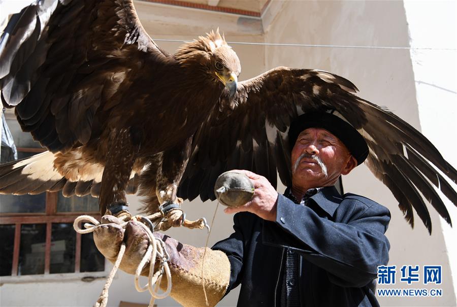 6月29日,庫爾馬西·胡特曼撫摸他的獵鷹。馴鷹習(xí)俗是柯爾克孜族長期以來形成的一種生產(chǎn)生活習(xí)俗,新疆克孜勒蘇柯爾克孜自治州阿合奇縣牙朗奇村的庫爾馬西·胡特曼今年69歲,是國家級(jí)非物質(zhì)文化遺產(chǎn)代表性項(xiàng)目柯爾克孜族馴鷹習(xí)俗的代表性傳承人。庫爾馬西的家族世代馴鷹。從小與鷹相處,庫爾馬西成為名副其實(shí)的“鷹語者”。要將兇猛的野鷹訓(xùn)練成聽從指揮的獵鷹絕非易事,需要馴鷹人投入大量心血,精心喂養(yǎng)。一代代馴鷹人之間口耳相傳,形成了一套涵蓋取鷹、熬鷹、馴鷹、放鷹等方面的絕學(xué)。“鷹是有靈性的動(dòng)物,懂得感恩,會(huì)通過抖動(dòng)羽毛來表示喜悅,表示對(duì)你的愛?!睅鞝栺R西說,“鷹也會(huì)因?yàn)槲业目洫?jiǎng)給我信號(hào),通過叫聲、身體語言告訴我,它理解了我的話。”在柯爾克孜族的馴鷹傳統(tǒng)里,獵鷹在為主人“服役”一到五年后,將重返天空,獲得自由。隨著野生動(dòng)物保護(hù)相關(guān)法規(guī)的出臺(tái),當(dāng)?shù)匾呀柜Z鷹人取鷹捕鷹,目前已馴養(yǎng)的獵鷹放飛后恐將無以為繼?;蛟S,庫爾馬西這一代人,將成為最后的“鷹語者”。新華社記者宋彥樺攝