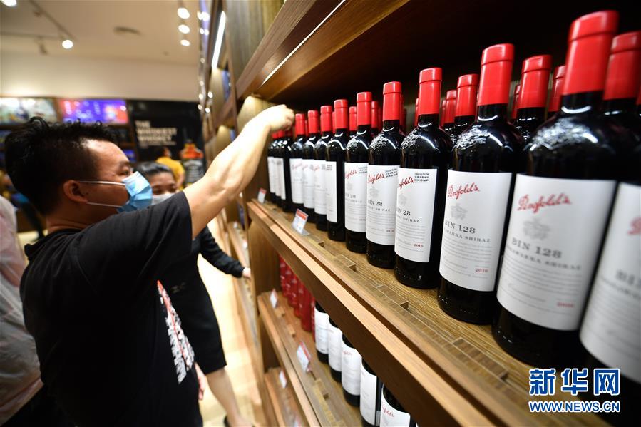 7月1日,顧客在??谌赵聫V場免稅店選購酒類商品。當(dāng)日,海南開始實(shí)施調(diào)整后的離島免稅購物政策。海南離島旅客每年每人免稅購物額度提高至10萬元,電子消費(fèi)產(chǎn)品等7類新增商品開售。新華社記者郭程攝
