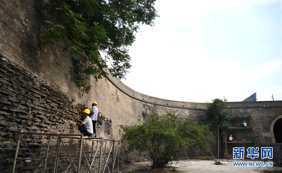 7月2日,工作人員在永年廣府古城修繕城墻。經(jīng)國(guó)家文物局和河北省文物局批準(zhǔn),河北永年廣府古城修繕工程已全面啟動(dòng)。在文物專家全程參與下,按照“不改變文物原狀”原則進(jìn)行修繕,預(yù)計(jì)2021年4月底完工。永年廣府古城擁有華北地區(qū)保存最完整的古城墻,現(xiàn)為全國(guó)重點(diǎn)文物保護(hù)單位。新華社記者王曉攝
