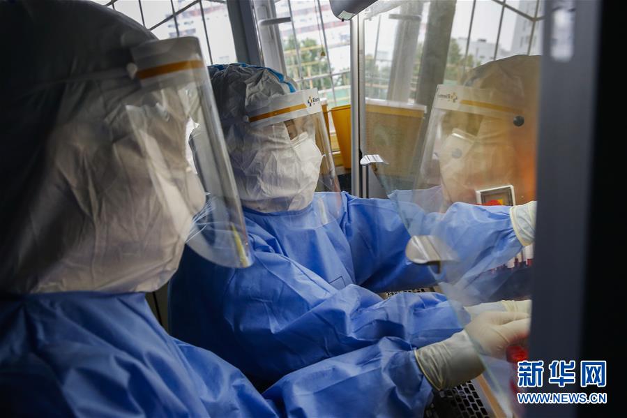 7月3日,中日友好醫(yī)院檢驗(yàn)科新冠核酸檢測(cè)實(shí)驗(yàn)室的檢驗(yàn)人員張?chǎng)稳〕鼋?jīng)過滅活的樣本。新華社記者張玉薇攝