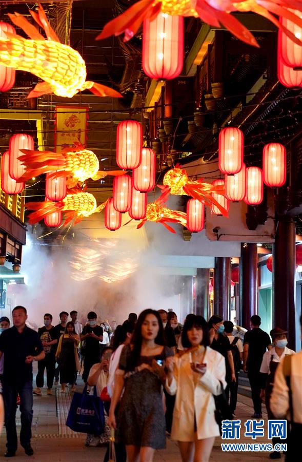 7月3日在上海豫園拍攝的燈景。從7月第一個(gè)周末起,上海豫園原有的“豫園六點(diǎn)半”集市全面升級,煥彩燈光、演藝活動和花車集市全線更新,讓市民和游客在觀燈、觀人、觀演的沉浸式體驗(yàn)中,享受夏日特色的“食玩”樂趣。新華社記者 劉穎 攝