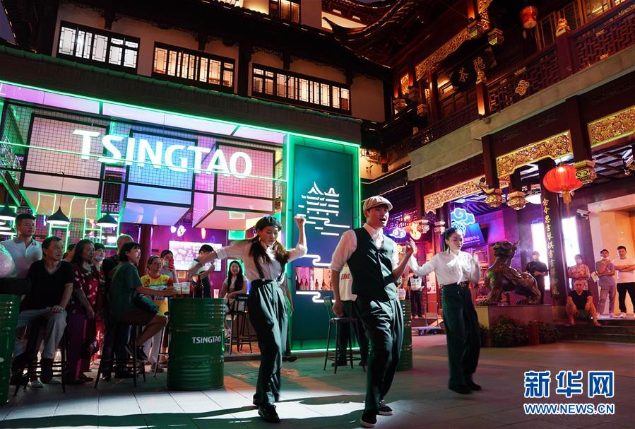 7月3日,游人在上海豫園中心廣場觀看街舞表演。從7月第一個(gè)周末起,上海豫園原有的“豫園六點(diǎn)半”集市全面升級,煥彩燈光、演藝活動和花車集市全線更新,讓市民和游客在觀燈、觀人、觀演的沉浸式體驗(yàn)中,享受夏日特色的“食玩”樂趣。新華社記者 劉穎 攝