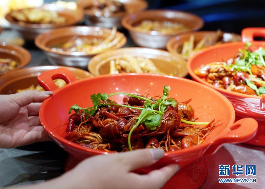 7月3日在上海豫園小吃城內(nèi)拍攝的小龍蝦菜肴。從7月第一個(gè)周末起,上海豫園原有的“豫園六點(diǎn)半”集市全面升級,煥彩燈光、演藝活動和花車集市全線更新,讓市民和游客在觀燈、觀人、觀演的沉浸式體驗(yàn)中,享受夏日特色的“食玩”樂趣。新華社記者 劉穎 攝