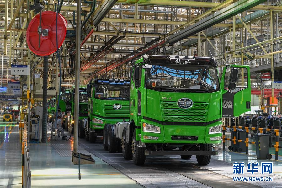 在位于長春市的一汽解放總裝車間,工人在裝配車輛(6月19日攝)。中國第一汽車集團(tuán)披露,截至6月30日,集團(tuán)上半年共計(jì)生產(chǎn)整車162.23萬輛,同比增長1.5%;銷售整車163.09萬輛,同比增長2.3%。新華社記者張楠攝