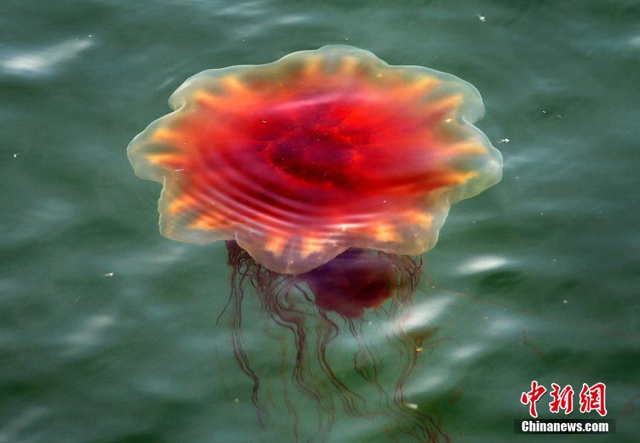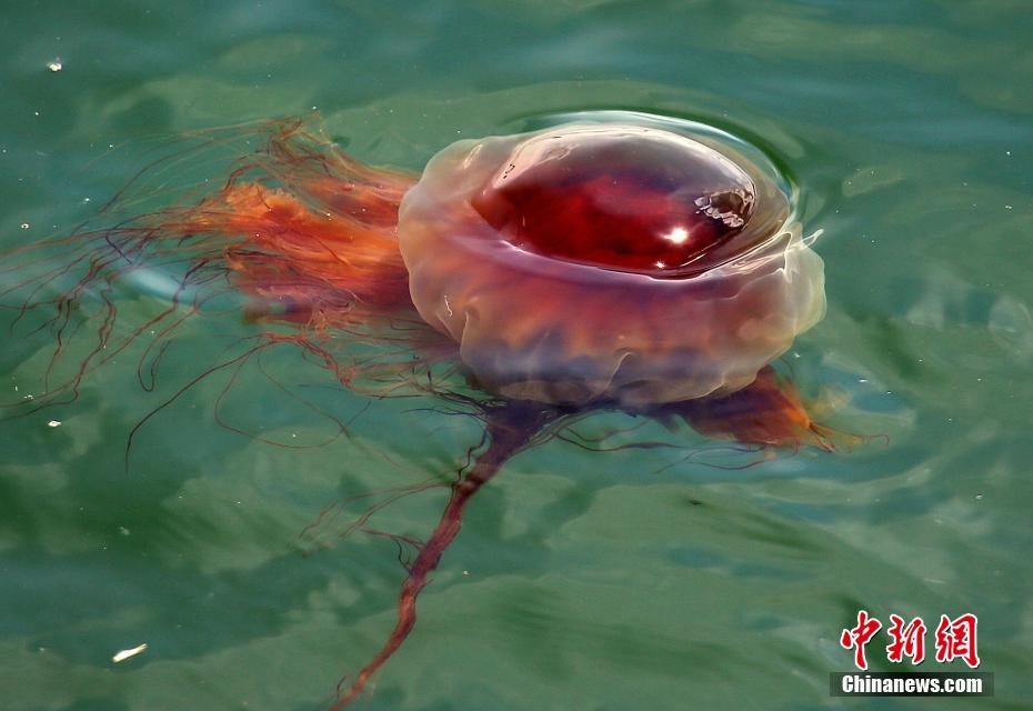 當(dāng)?shù)貢r(shí)間2020年6月25日,美國馬薩諸塞州,美國南部海岸近期出現(xiàn)大量獅鬃水母。圖片來源:視覺中國
