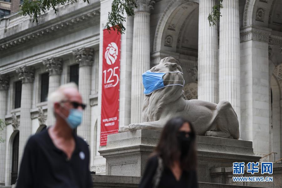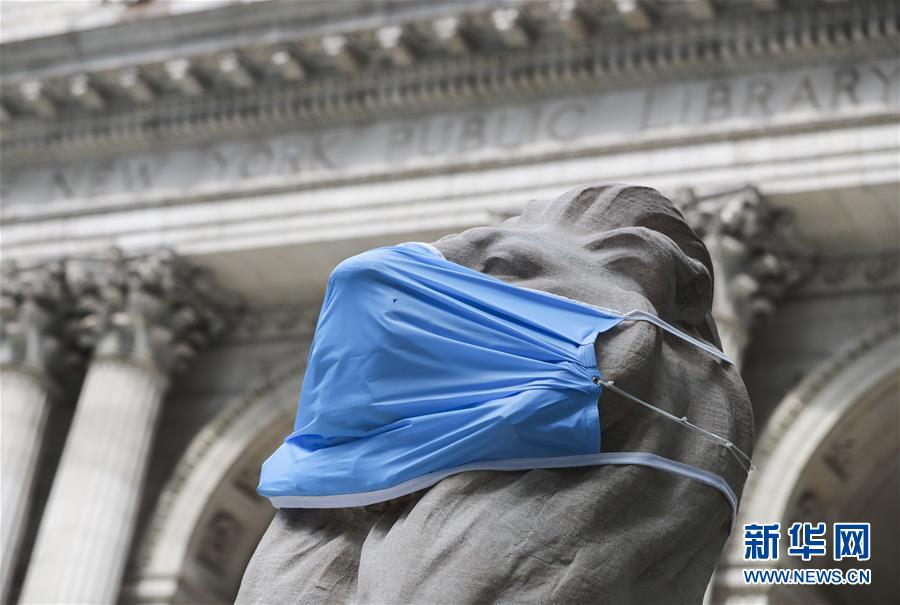 這是7月8日在美國(guó)紐約公共圖書館前拍攝的“戴”口罩的石獅子。美國(guó)約翰斯·霍普金斯大學(xué)8日發(fā)布的新冠疫情最新統(tǒng)計(jì)數(shù)據(jù)顯示,美國(guó)累計(jì)確診病例超過(guò)300萬(wàn)例。數(shù)據(jù)顯示,截至美國(guó)東部時(shí)間8日11時(shí)34分(北京時(shí)間23時(shí)34分),美國(guó)累計(jì)確診病例3016515例,累計(jì)死亡病例131594例。新華社記者王迎攝