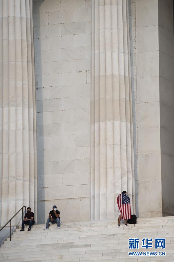 7月8日,在美國(guó)華盛頓,一名披著美國(guó)國(guó)旗的男子站在林肯紀(jì)念堂臺(tái)階上。美國(guó)約翰斯·霍普金斯大學(xué)8日發(fā)布的新冠疫情最新統(tǒng)計(jì)數(shù)據(jù)顯示,美國(guó)累計(jì)確診病例超過(guò)300萬(wàn)例。數(shù)據(jù)顯示,截至美國(guó)東部時(shí)間8日11時(shí)34分(北京時(shí)間23時(shí)34分),美國(guó)累計(jì)確診病例3016515例,累計(jì)死亡病例131594例。新華社記者劉杰攝
