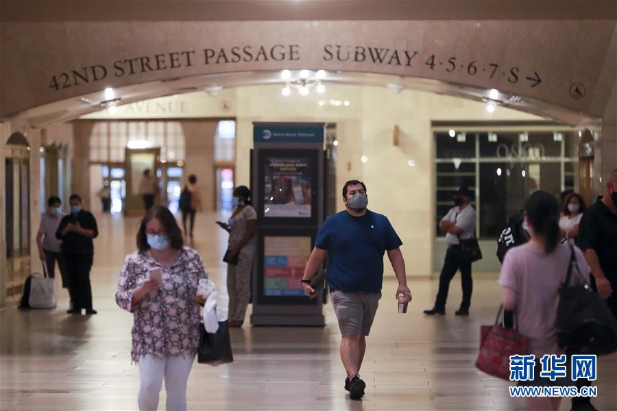 7月8日,人們?cè)诿绹?guó)紐約中央車站內(nèi)等候乘車。美國(guó)約翰斯·霍普金斯大學(xué)8日發(fā)布的新冠疫情最新統(tǒng)計(jì)數(shù)據(jù)顯示,美國(guó)累計(jì)確診病例超過(guò)300萬(wàn)例。數(shù)據(jù)顯示,截至美國(guó)東部時(shí)間8日11時(shí)34分(北京時(shí)間23時(shí)34分),美國(guó)累計(jì)確診病例3016515例,累計(jì)死亡病例131594例。新華社記者王迎攝