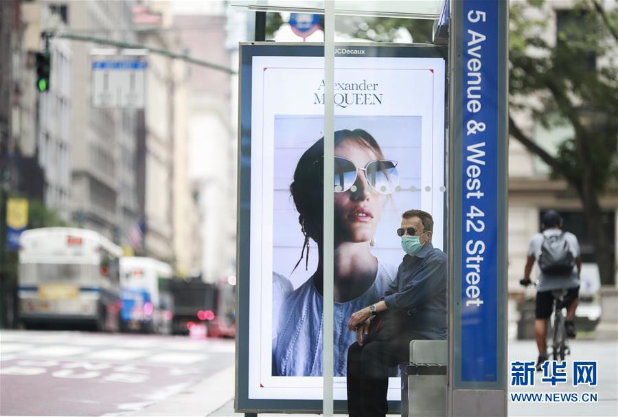 7月8日,一名男子在紐約第五大道的公交車站等車。美國(guó)約翰斯·霍普金斯大學(xué)8日發(fā)布的新冠疫情最新統(tǒng)計(jì)數(shù)據(jù)顯示,美國(guó)累計(jì)確診病例超過(guò)300萬(wàn)例。數(shù)據(jù)顯示,截至美國(guó)東部時(shí)間8日11時(shí)34分(北京時(shí)間23時(shí)34分),美國(guó)累計(jì)確診病例3016515例,累計(jì)死亡病例131594例。新華社記者王迎攝