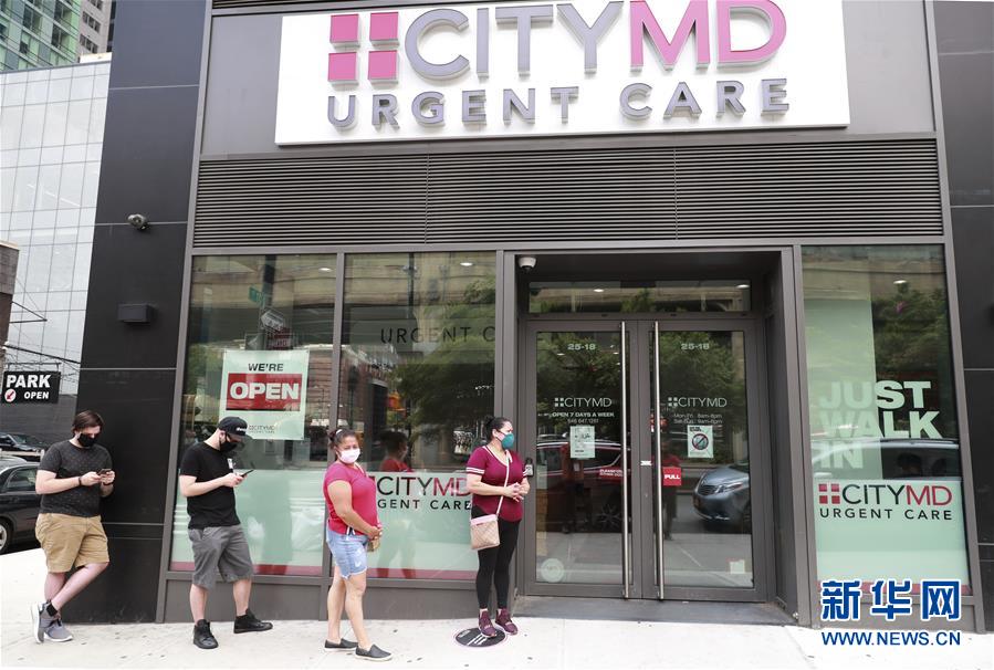 7月8日,人們?cè)诿绹?guó)紐約一家診所外排隊(duì)等候進(jìn)行新冠病毒檢測(cè)。美國(guó)約翰斯·霍普金斯大學(xué)8日發(fā)布的新冠疫情最新統(tǒng)計(jì)數(shù)據(jù)顯示,美國(guó)累計(jì)確診病例超過(guò)300萬(wàn)例。數(shù)據(jù)顯示,截至美國(guó)東部時(shí)間8日11時(shí)34分(北京時(shí)間23時(shí)34分),美國(guó)累計(jì)確診病例3016515例,累計(jì)死亡病例131594例。新華社記者王迎攝