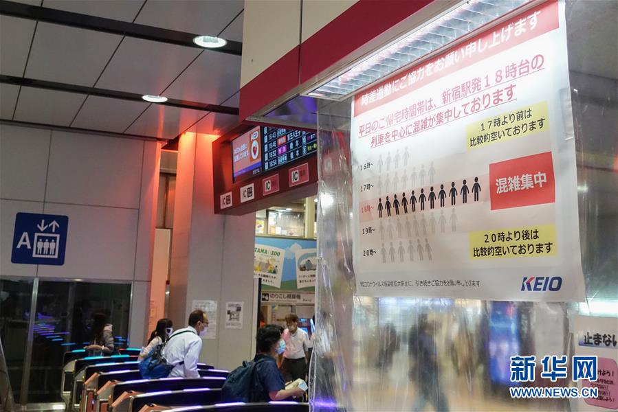 7月9日,日本東京新宿車(chē)站的一處入口上貼出告示,顯示該線(xiàn)路的人流量統(tǒng)計(jì),建議乘客錯(cuò)峰出行。據(jù)日本廣播協(xié)會(huì)電視臺(tái)9日統(tǒng)計(jì),截至當(dāng)?shù)貢r(shí)間9日20時(shí)40分,日本當(dāng)日新增新冠確診病例354例,是5月2日以來(lái)該國(guó)單日新增確診首次超過(guò)300例,累計(jì)確診20767例,累計(jì)死亡982例。據(jù)統(tǒng)計(jì),東京都當(dāng)天新增確診224例,創(chuàng)當(dāng)?shù)爻霈F(xiàn)疫情以來(lái)單日新增確診新高。新華社記者杜瀟逸攝