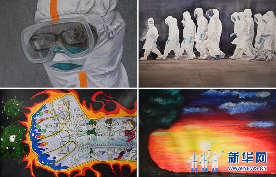 這是在吉林省抗疫主題美術(shù)·攝影作品展上展出的部分作品(拼版照片,7月11日攝)。近日,“大愛無疆——吉林省抗疫主題美術(shù)·攝影作品展”在吉林省工藝美術(shù)館與觀眾見面。展覽共展出抗擊新冠肺炎疫情主題書法、國(guó)畫、油畫、攝影等作品367件(組)。新華社記者 許暢 攝