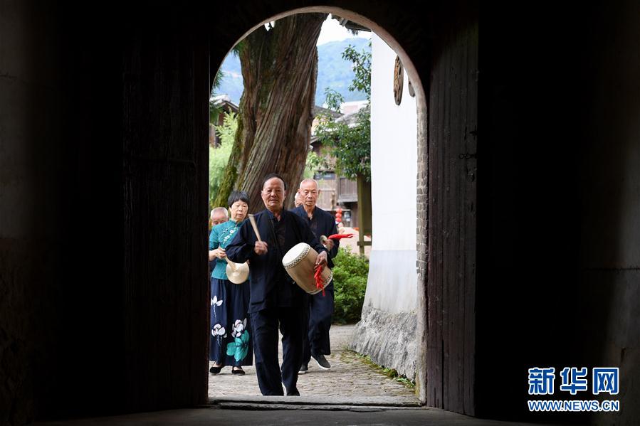 7月4日,浦源村民在村里的鄭氏宗祠集合,準備展示魚祭習(xí)俗。魚祭習(xí)俗是為死去的鯉魚舉行送葬儀式,是浦源村特有的習(xí)俗。新華社記者 姜克紅 攝