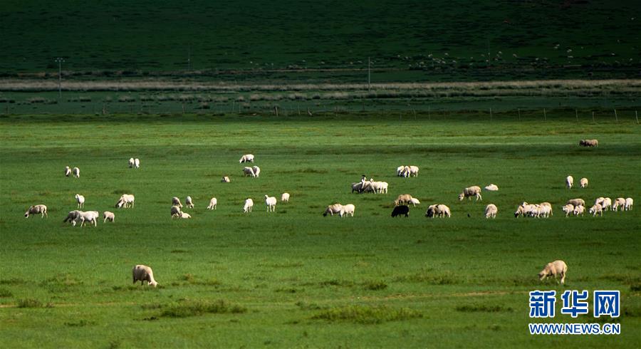7月18日,羊群在內(nèi)蒙古錫林郭勒盟正鑲白旗境內(nèi)的草原上覓食。連日來(lái),內(nèi)蒙古錫林郭勒盟迎來(lái)多次降雨,境內(nèi)廣袤的草原經(jīng)過(guò)雨水的滋潤(rùn),煥發(fā)出勃勃生機(jī)。新華社記者魏婧宇攝