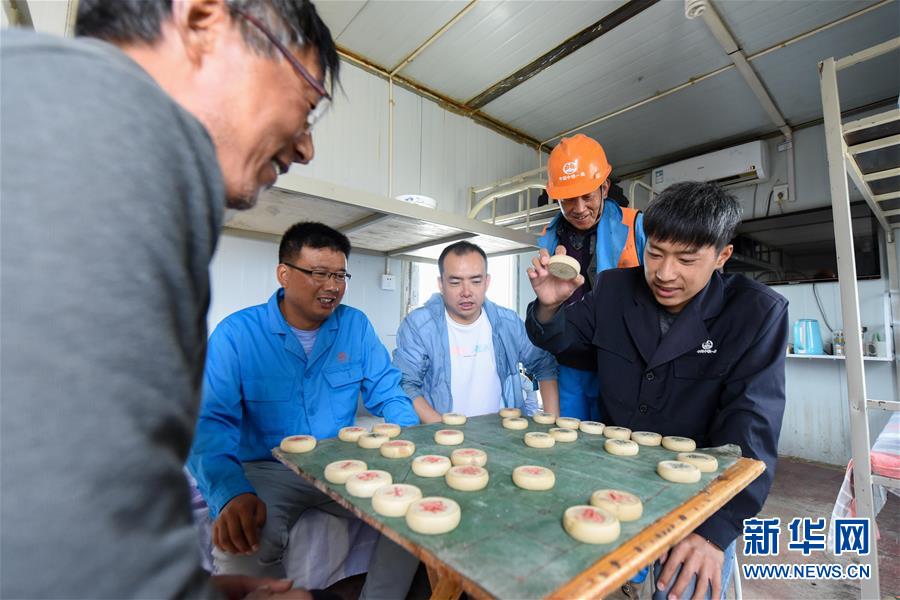 在索爾庫里宿營地,中鐵一局的施工人員排隊(duì)打飯(7月19日攝)。新華社記者 丁磊 攝