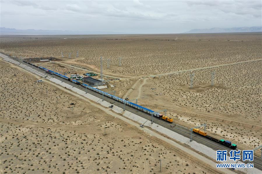 靜駐在戈壁上,它是鐵路工人流動(dòng)的家(7月19日攝,無人機(jī)照片)。新華社記者 丁磊 攝