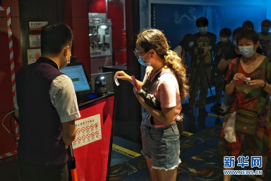 7月24日,在首都電影院(西單店),市民排隊驗票進(jìn)入影廳。當(dāng)日,在做好新冠肺炎疫情防控的前提下,北京市部分電影院有序恢復(fù)開放。新華社記者 彭子洋 攝