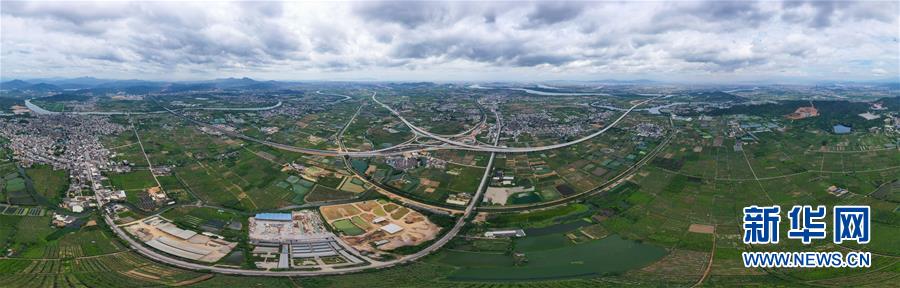 這是已經(jīng)建設(shè)完成的潮汕環(huán)線高速公路上北互通立交(無人機(jī)照片,7月31日攝)。新華社記者劉大偉攝