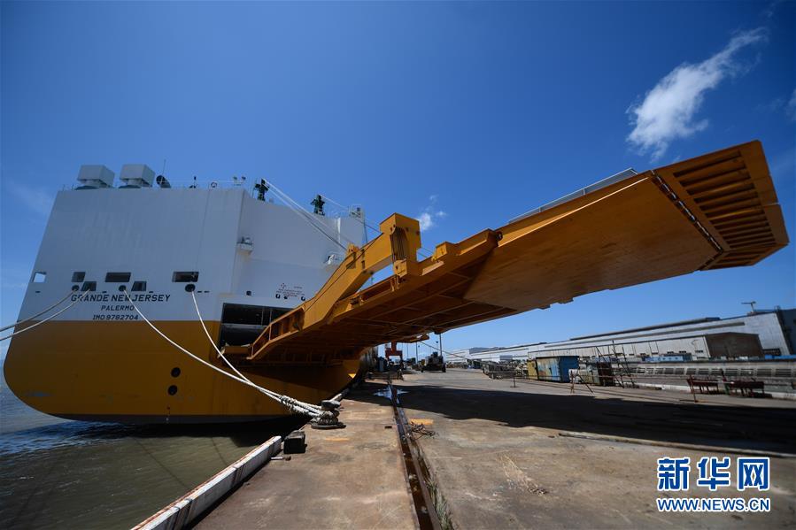 8月1日在位于螞蟻島的揚(yáng)帆集團(tuán)東海岸造船廠拍攝的一艘在建的汽車滾裝船,月底即將交付給意大利客戶。新華社記者黃宗治攝