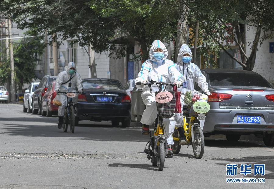 8月3日,在烏魯木齊天山區(qū)西河壩前街社區(qū),社區(qū)工作人員騎著”跑腿小車“為居民送去生活物品。新疆烏魯木齊市天山區(qū)西河壩前街社區(qū)主次干道較多,院落分布分散。新冠肺炎疫情防控期間,社區(qū)整合現(xiàn)有資源,將暫時閑置的自行車、電動車集中起來,貼上“跑腿小車”標(biāo)識,成立便民服務(wù)隊,社區(qū)工作人員通過“跑腿小車”可將居民網(wǎng)絡(luò)定制的“菜袋子”“藥盒子”快速送達,給居民帶來方便。新華社記者趙戈攝
