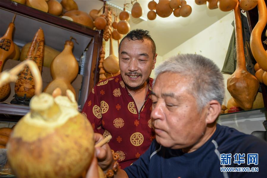 8月5日,侯景偉(左)向徒弟金志勇傳授技藝。今年55歲的吉林四平人侯景偉自幼與家人學(xué)習(xí)雕刻、烙畫藝術(shù)。經(jīng)過多年潛心研究,他將浮雕和烙畫工藝相結(jié)合,通過拋光、起稿、雕刻、烙燙、套色等十余道工藝,制作展現(xiàn)傳統(tǒng)文化、民俗故事的葫蘆工藝品。2020年,侯景偉被評(píng)為四平市非物質(zhì)文化遺產(chǎn)項(xiàng)目侯氏葫蘆雕刻烙畫代表性傳承人。他說:“希望有更多人加入到非遺傳承隊(duì)伍中,讓小葫蘆‘講’出更多民俗故事。”新華社記者張楠攝