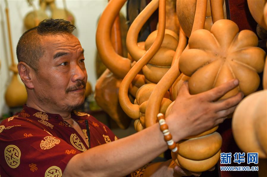8月5日,侯景偉挑選適合創(chuàng)作的葫蘆。今年55歲的吉林四平人侯景偉自幼與家人學(xué)習(xí)雕刻、烙畫(huà)藝術(shù)。經(jīng)過(guò)多年潛心研究,他將浮雕和烙畫(huà)工藝相結(jié)合,通過(guò)拋光、起稿、雕刻、烙燙、套色等十余道工藝,制作展現(xiàn)傳統(tǒng)文化、民俗故事的葫蘆工藝品。2020年,侯景偉被評(píng)為四平市非物質(zhì)文化遺產(chǎn)項(xiàng)目侯氏葫蘆雕刻烙畫(huà)代表性傳承人。他說(shuō):“希望有更多人加入到非遺傳承隊(duì)伍中,讓小葫蘆‘講’出更多民俗故事。”新華社記者張楠攝