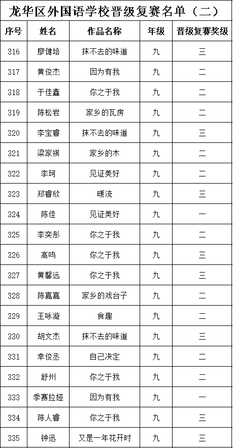 自2021年1月,活動(dòng)征稿啟動(dòng)以來,獲得了深圳市廣大中小學(xué)生、教師、文學(xué)愛好者的熱烈響應(yīng)積極參與,吸引了深圳百余所學(xué)校的上萬人關(guān)注報(bào)名。現(xiàn)公布龍華區(qū)外國(guó)語學(xué)校專場(chǎng)晉級(jí)復(fù)賽名單如下: